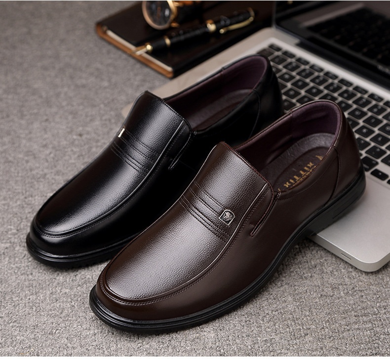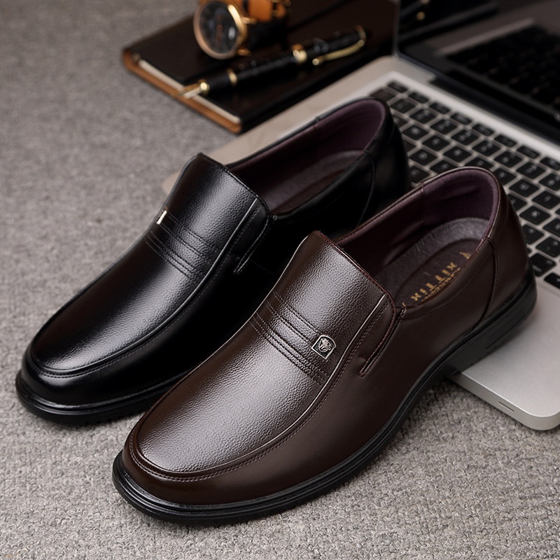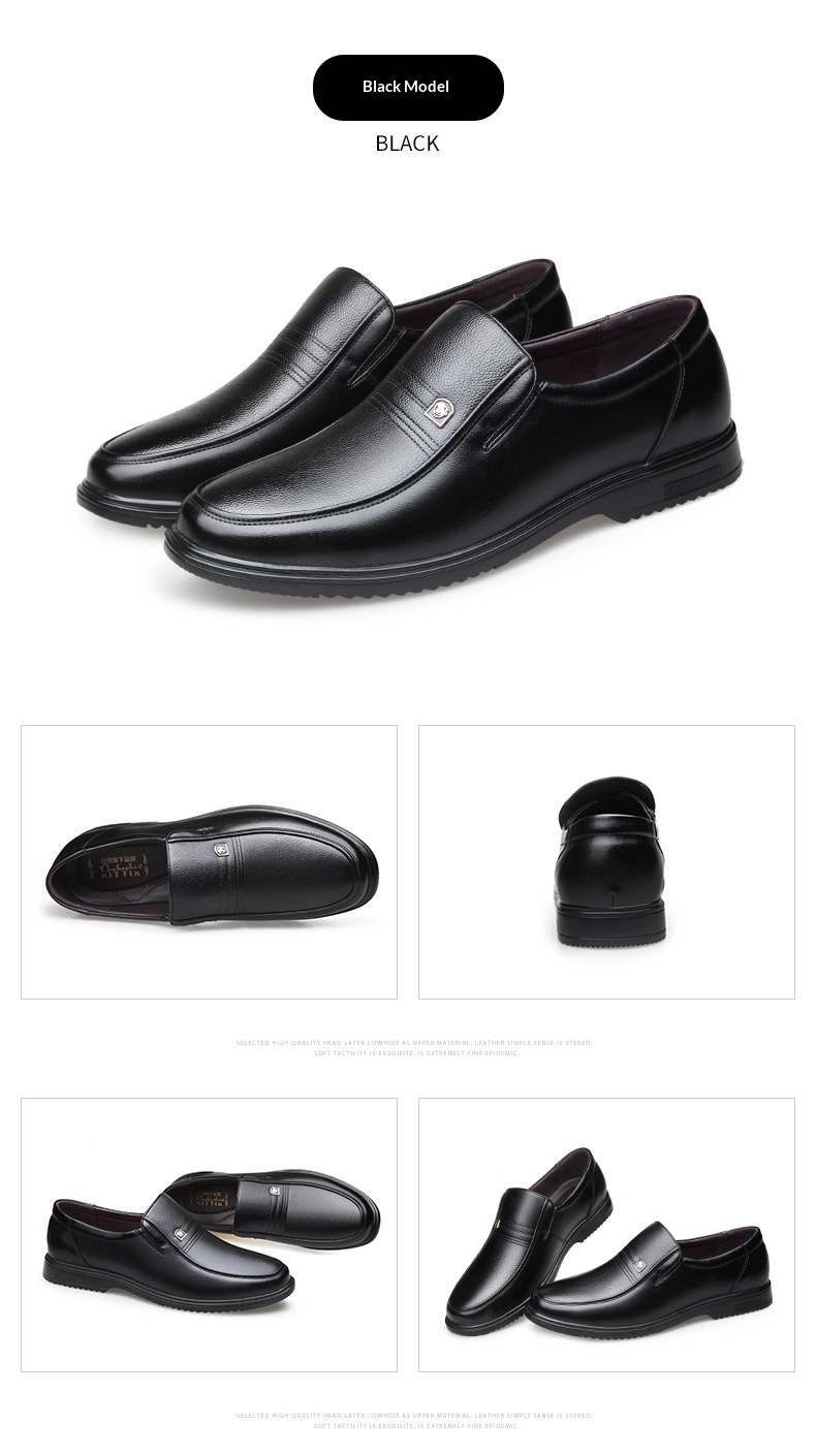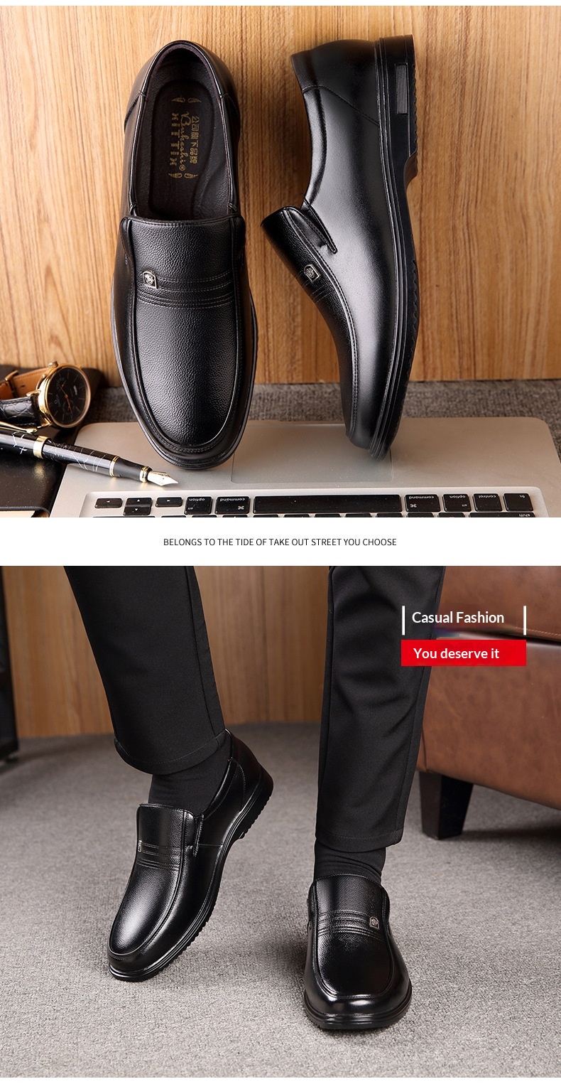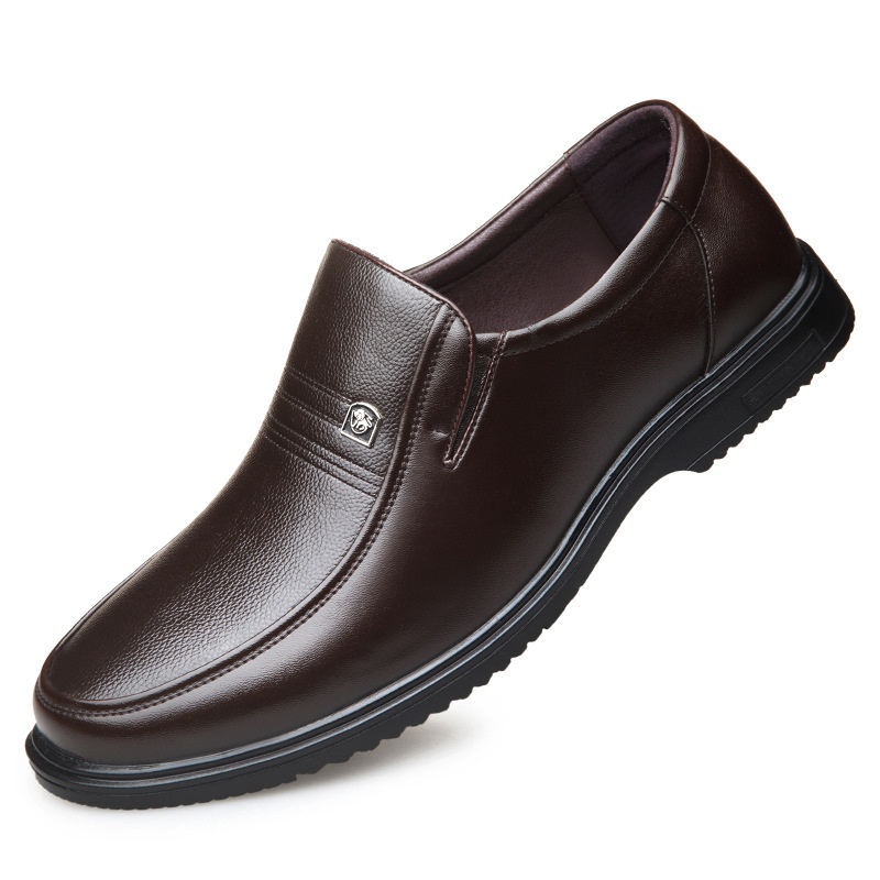 Men's Leather Genuine Flat Sole Round Toe Soft Sole Non-slip Casual Shoes For Middle-aged